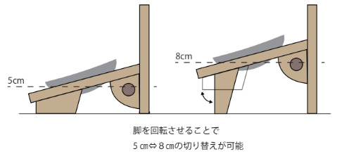 愛犬のサイズに合わせて使える2段階の高さ調節機能付きです。食器を乗せる部分には15度の傾斜があり咳き込みや首と腰の痛みを防ぐ設計です。